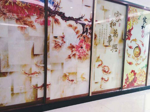 玻璃移门一般用在书房、客厅、卧室、衣橱等地方。玻璃UV打印的优势:可在任何玻璃材质上喷印图片。如:透明玻璃、磨砂玻璃、水晶、玻璃瓶、琉璃等,直接连接电脑,用于产品打样时,只要将设计稿(图片、照片)输入电脑就可以直接在任何材质上完成输出,众多色彩一次打印成功,批量生产可以将印刷物体根据打印面积摆满,即可一次打印,操作简单,方便快捷。