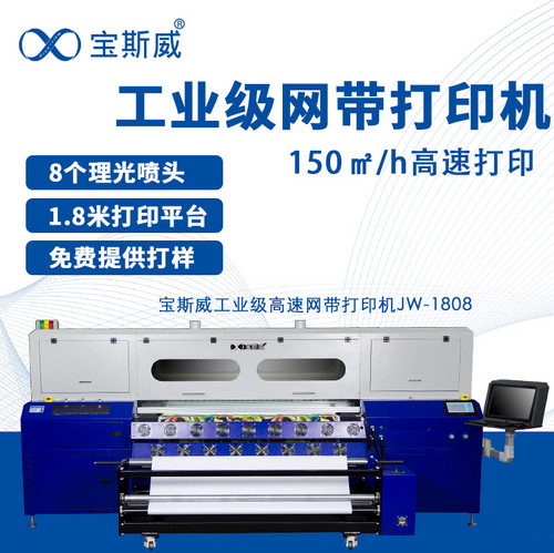 这么漂亮的丝圈地毯是用什么机器做出来的呢?丝圈地垫打印就用宝斯威JW-1808网带打印机。宝斯威为做丝圈地垫的客户提供了既环保打印质量又高的解决方案,JW-1808网带打印机采用了8个理光喷头的配置,最高生产速度可达150㎡/h,上材料直接打印,无需前后处理,打印完就是成品。