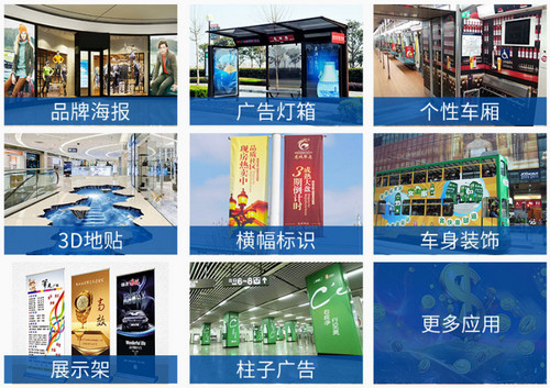 宝斯威i3200-e1喷头打印机主要运用在户内外广告写真打印方案,打印品牌海报、广告灯箱、个性车厢、3D地贴、横幅标识、车身装饰、展示架、柱子广告等应用有着不错的效果。