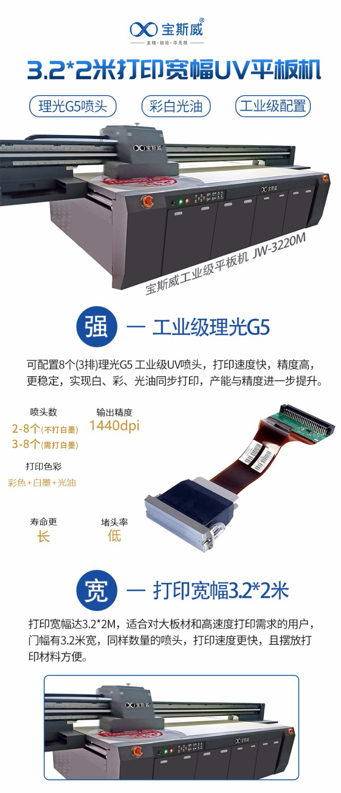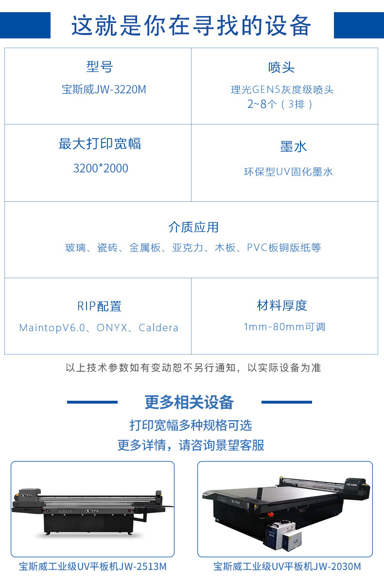 宝斯威工业级UV平板机JW-3220M