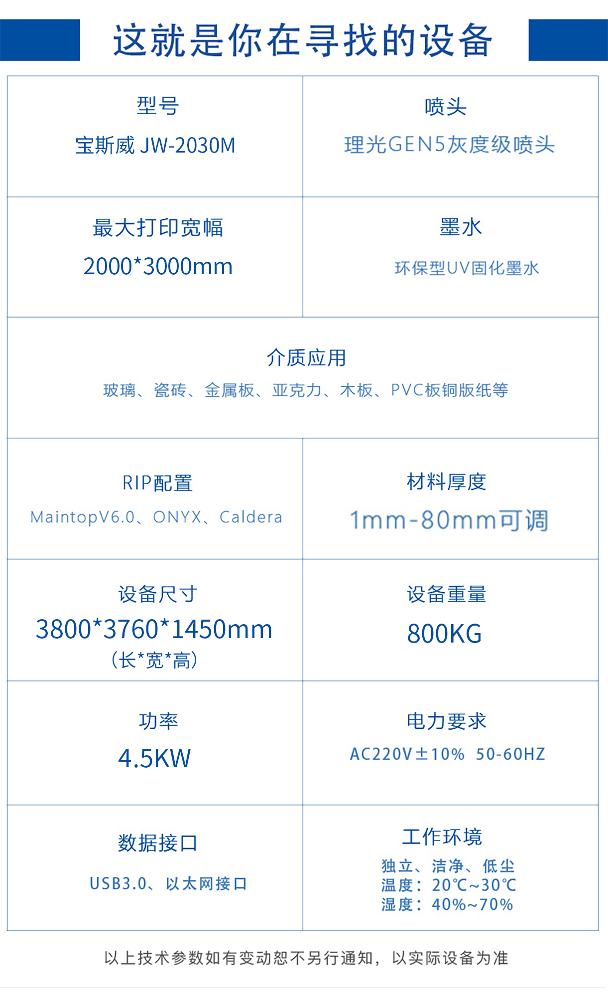 宝斯威工业级UV平板机JW-2030M