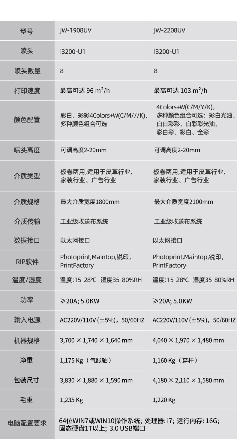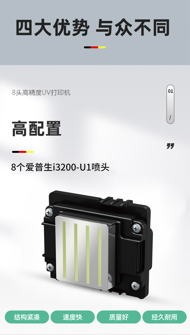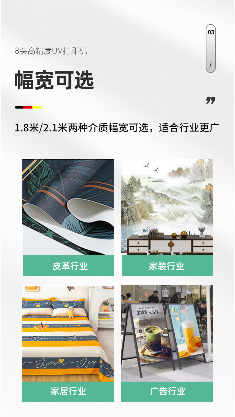 配置8个i3200-U1喷头,1.8米/2.1米两种介质幅宽可选