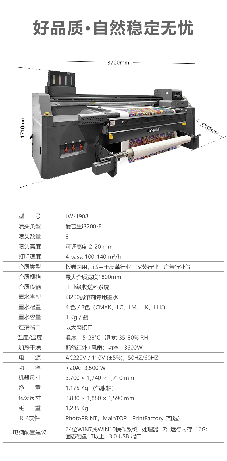 1.8米介质宽幅,适应更多打印方案