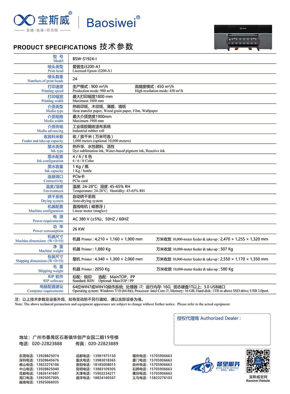 宝斯威24头工业高速数码印花机 BSW-S1924-I