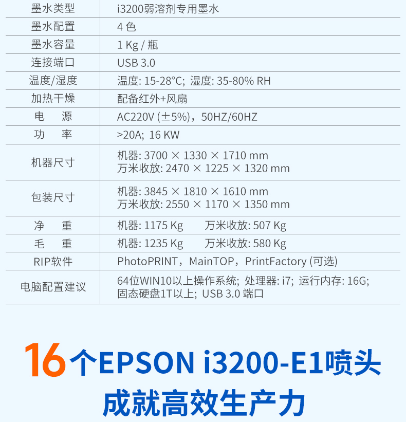 配置16个i3200喷头,画面精美细腻